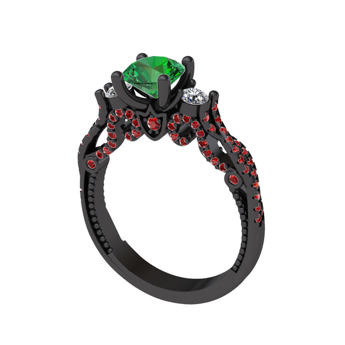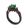 Yeşil kuvars, swarovski ve garnet 925 ayar siyah rodyum kaplama gümüş yüzük