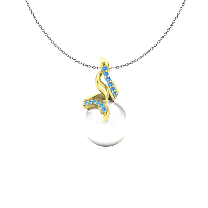Inci ve akuamarin 925 ayar altın kaplama gümüş kolye (40 cm gümüş rolo zincir)