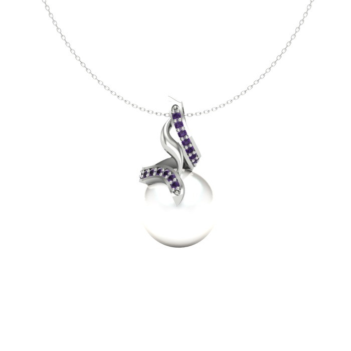 Inci ve ametist 18 ayar beyaz altın kolye (40 cm beyaz altın rolo zincir)