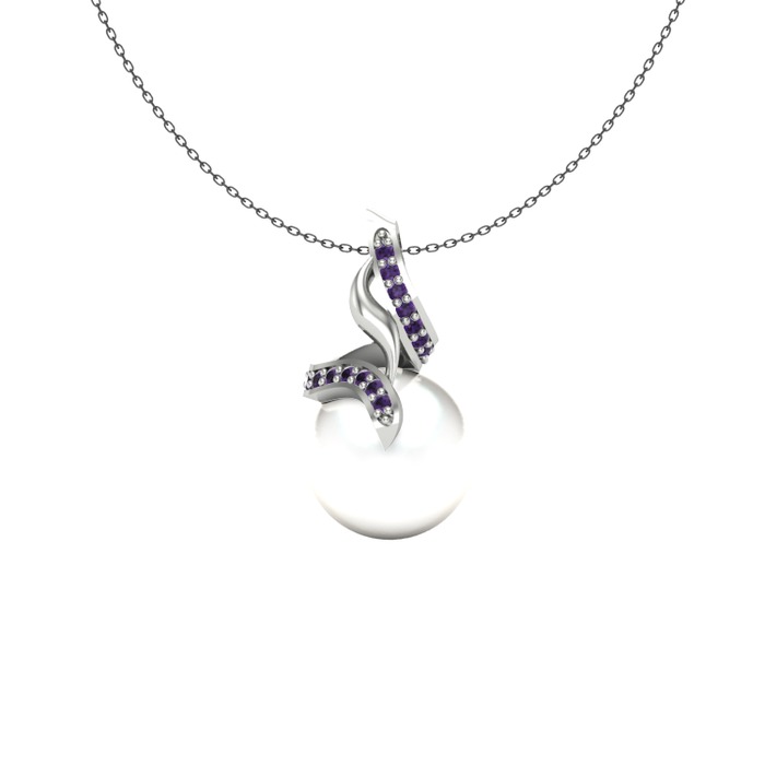 Inci ve ametist 18 ayar beyaz altın kolye (40 cm gümüş rolo zincir)