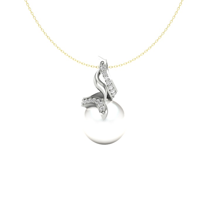 Inci ve beyaz zirkon 18 ayar beyaz altın kolye (40 cm altın rolo zincir)