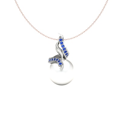 Inci ve lab safir 925 ayar gümüş kolye (40 cm rose altın rolo zincir)