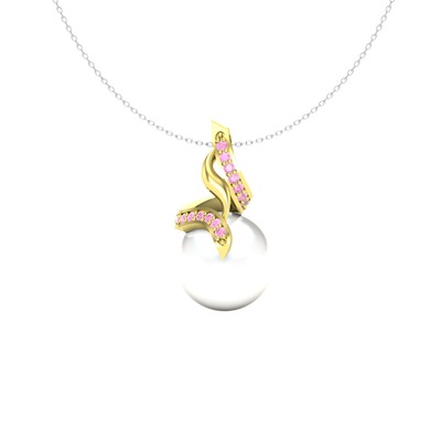 Inci ve pembe kuvars 18 ayar altın kolye (40 cm beyaz altın rolo zincir)