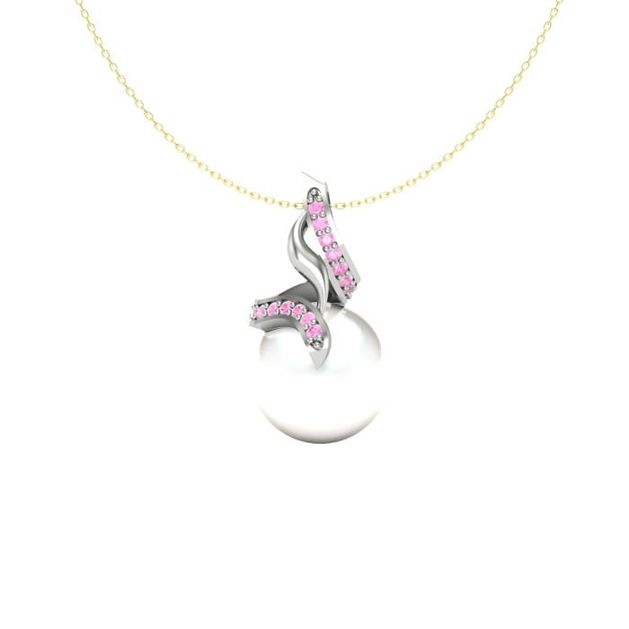 Inci ve pembe kuvars 925 ayar gümüş kolye (40 cm altın rolo zincir)
