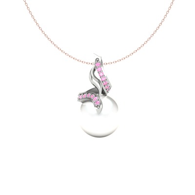 Inci ve pembe kuvars 925 ayar gümüş kolye (40 cm rose altın rolo zincir)