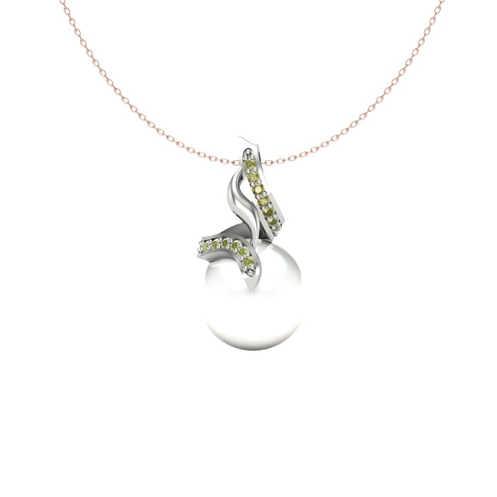 Inci ve peridot 925 ayar gümüş kolye (40 cm rose altın rolo zincir)
