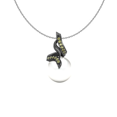 Inci ve peridot 925 ayar siyah rodyum kaplama gümüş kolye (40 cm gümüş rolo zincir)