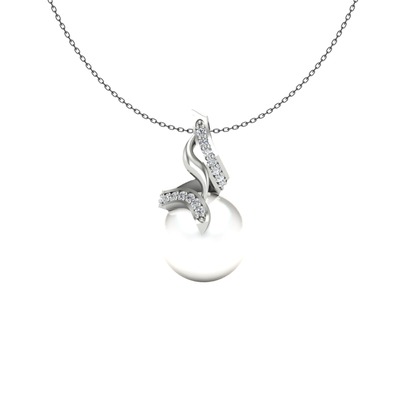 Inci ve pırlanta 925 ayar gümüş kolye (0.2288 karat, 40 cm gümüş rolo zincir)
