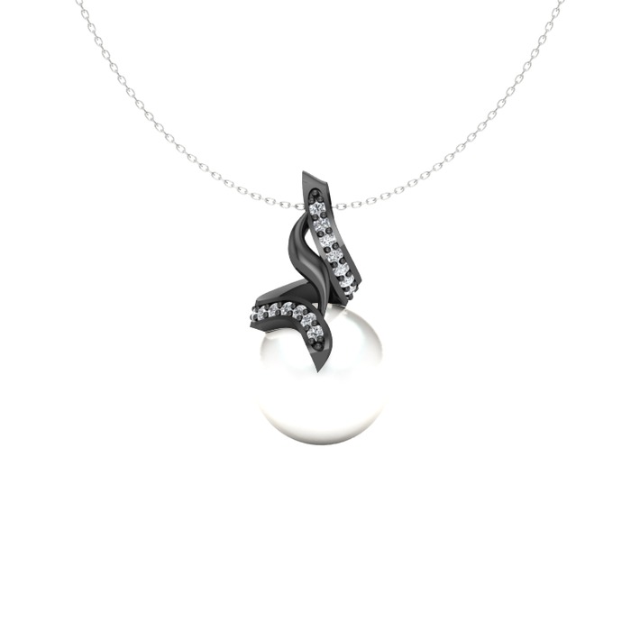 Inci ve pırlanta 925 ayar siyah rodyum kaplama gümüş kolye (0.2288 karat, 40 cm gümüş rolo zincir)
