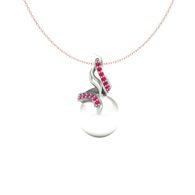 Inci ve rodolit garnet 8 ayar beyaz altın kolye (40 cm rose altın rolo zincir)