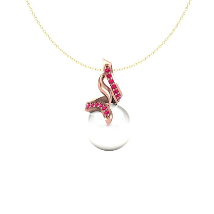 Inci ve rodolit garnet 925 ayar rose altın kaplama gümüş kolye (40 cm altın rolo zincir)