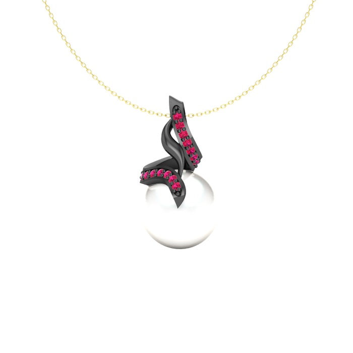 Inci ve rodolit garnet 925 ayar siyah rodyum kaplama gümüş kolye (40 cm altın rolo zincir)