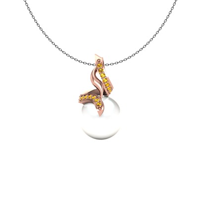 Inci ve sitrin 925 ayar rose altın kaplama gümüş kolye (40 cm gümüş rolo zincir)