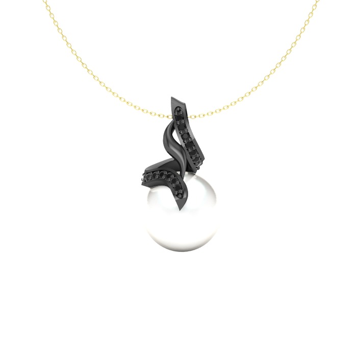 Inci ve siyah zirkon 925 ayar siyah rodyum kaplama gümüş kolye (40 cm altın rolo zincir)