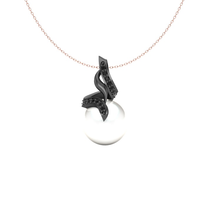 Inci ve siyah zirkon 925 ayar siyah rodyum kaplama gümüş kolye (40 cm gümüş rolo zincir)