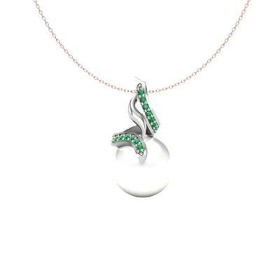 Inci ve yeşil kuvars 14 ayar beyaz altın kolye (40 cm rose altın rolo zincir)
