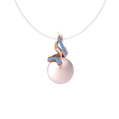 Pembe inci ve akuamarin 18 ayar rose altın kolye (40 cm gümüş rolo zincir)