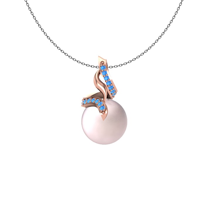 Pembe inci ve akuamarin 18 ayar rose altın kolye (40 cm gümüş rolo zincir)