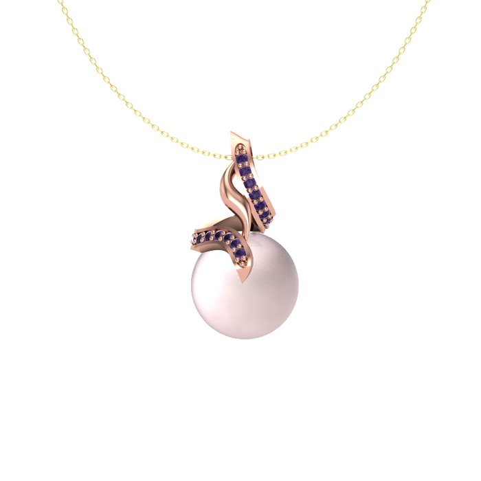 Pembe inci ve ametist 14 ayar rose altın kolye (40 cm altın rolo zincir)