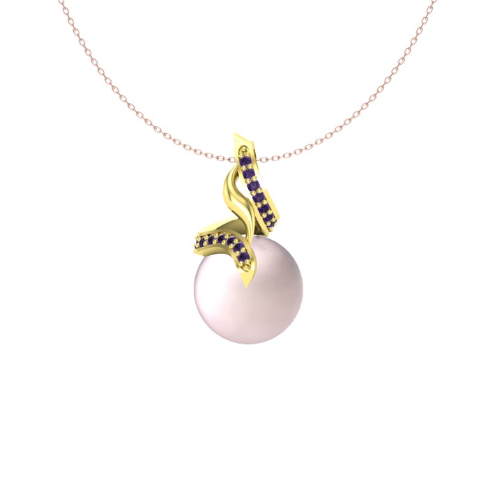 Pembe inci ve ametist 8 ayar altın kolye (40 cm rose altın rolo zincir)