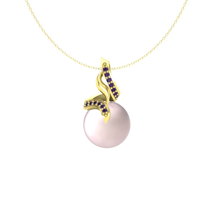 Pembe inci ve ametist 925 ayar altın kaplama gümüş kolye (40 cm altın rolo zincir)