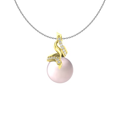 Pembe inci ve beyaz zirkon 18 ayar altın kolye (40 cm gümüş rolo zincir)