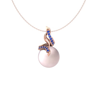 Pembe inci ve lab safir 8 ayar rose altın kolye (40 cm rose altın rolo zincir)