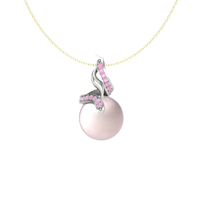 Pembe inci ve pembe kuvars 14 ayar beyaz altın kolye (40 cm altın rolo zincir)