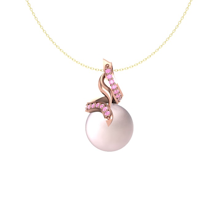 Pembe inci ve pembe kuvars 14 ayar rose altın kolye (40 cm altın rolo zincir)