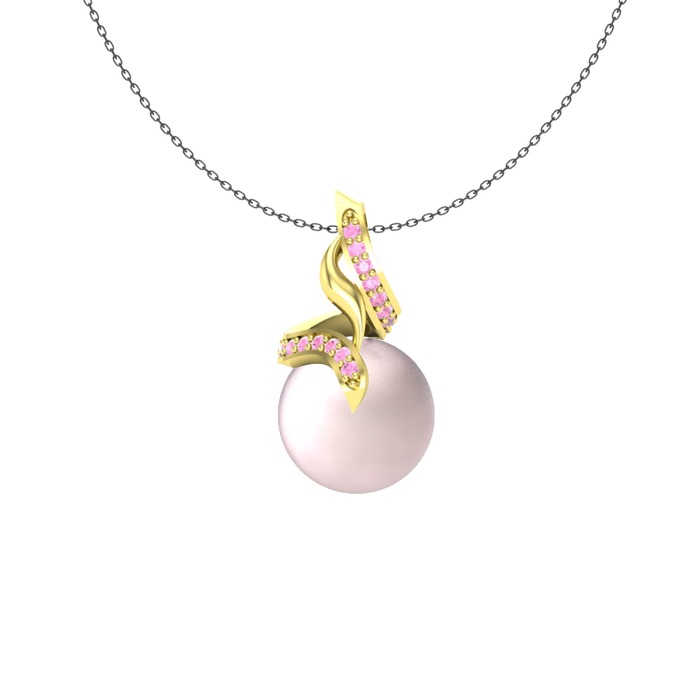Pembe inci ve pembe kuvars 18 ayar altın kolye (40 cm gümüş rolo zincir)