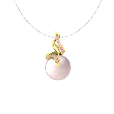 Pembe inci ve pembe kuvars 925 ayar altın kaplama gümüş kolye (40 cm gümüş rolo zincir)