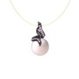 Pembe inci ve pembe kuvars 925 ayar siyah rodyum kaplama gümüş kolye (40 cm altın rolo zincir)
