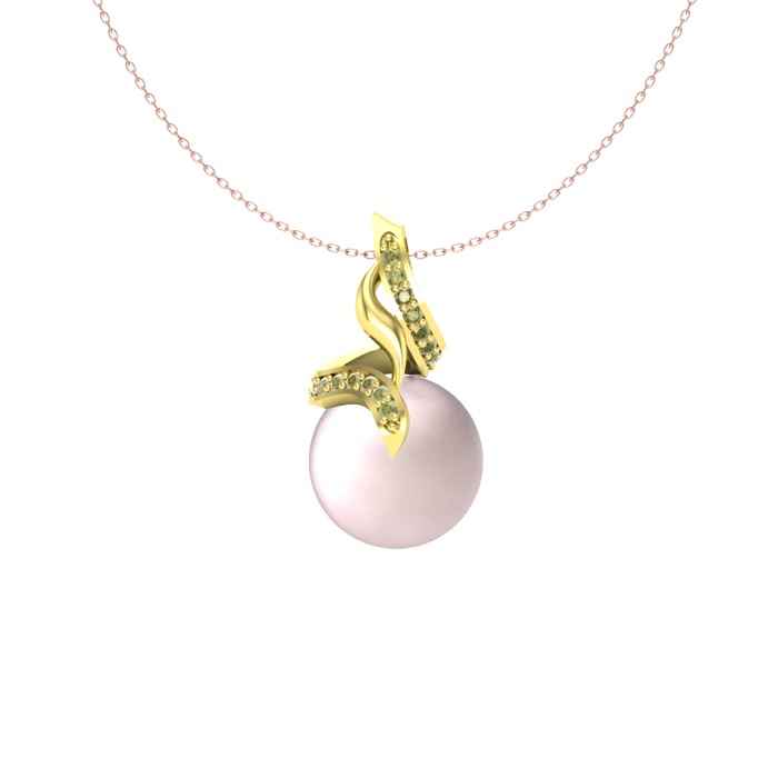 Pembe inci ve peridot 925 ayar altın kaplama gümüş kolye (40 cm rose altın rolo zincir)