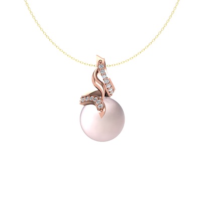 Pembe inci ve pırlanta 14 ayar rose altın kolye (0.2288 karat, 40 cm altın rolo zincir)