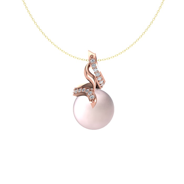 Pembe inci ve pırlanta 18 ayar rose altın kolye (0.2288 karat, 40 cm altın rolo zincir)