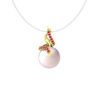 Pembe inci ve rodolit garnet 14 ayar altın kolye (40 cm beyaz altın rolo zincir)