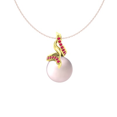 Pembe inci ve rodolit garnet 14 ayar altın kolye (40 cm rose altın rolo zincir)
