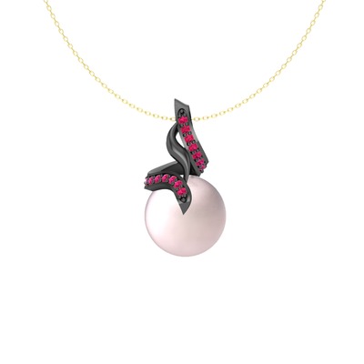 Pembe inci ve rodolit garnet 925 ayar siyah rodyum kaplama gümüş kolye (40 cm altın rolo zincir)