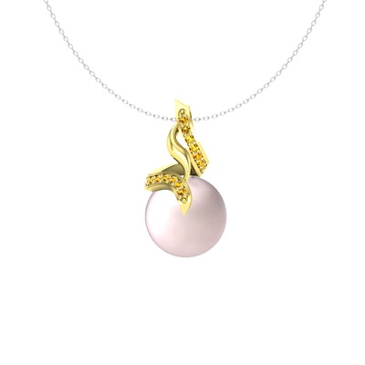 Pembe inci ve sitrin 8 ayar altın kolye (40 cm gümüş rolo zincir)