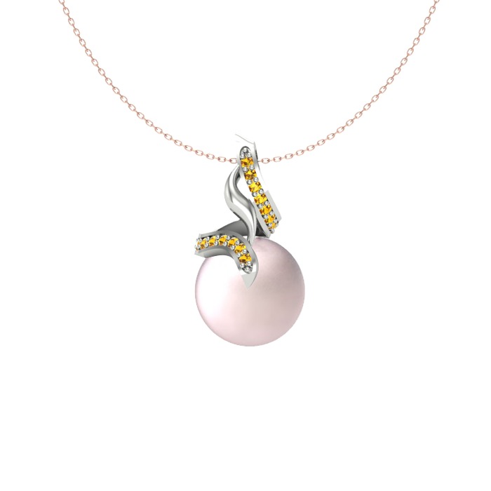 Pembe inci ve sitrin 8 ayar beyaz altın kolye (40 cm rose altın rolo zincir)