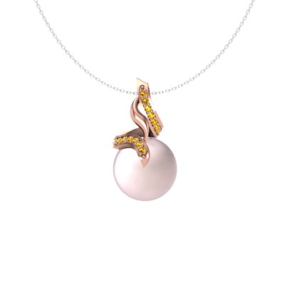 Pembe inci ve sitrin 8 ayar rose altın kolye (40 cm gümüş rolo zincir)