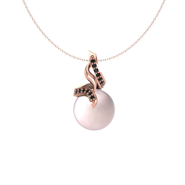 Pembe inci ve siyah zirkon 14 ayar rose altın kolye (40 cm gümüş rolo zincir)
