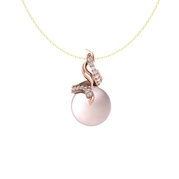 Pembe inci ve swarovski 18 ayar rose altın kolye (40 cm altın rolo zincir)