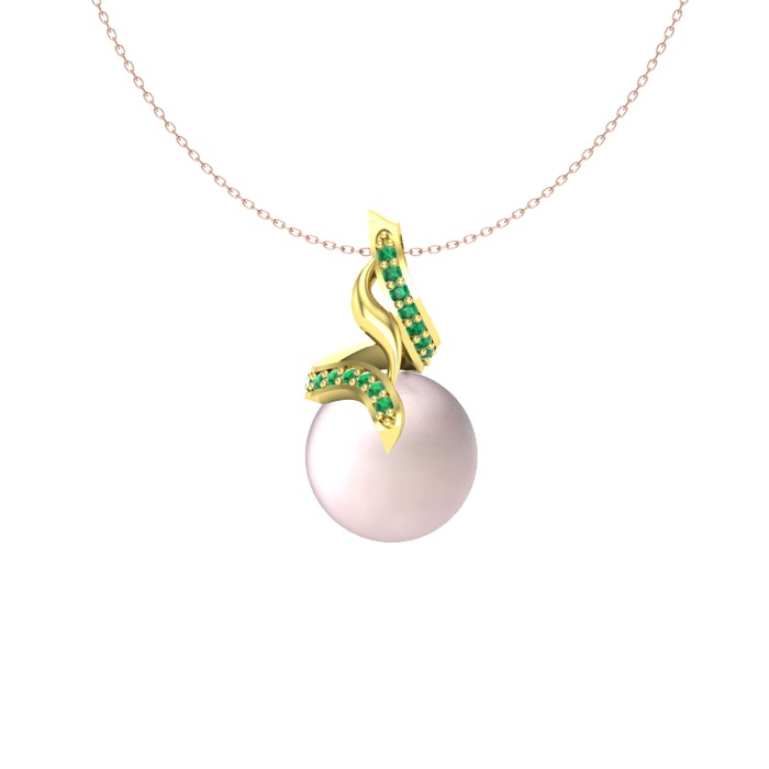 Pembe inci ve yeşil kuvars 14 ayar altın kolye (40 cm gümüş rolo zincir)
