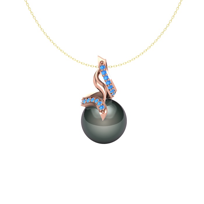 Siyah inci ve akuamarin 14 ayar rose altın kolye (40 cm altın rolo zincir)