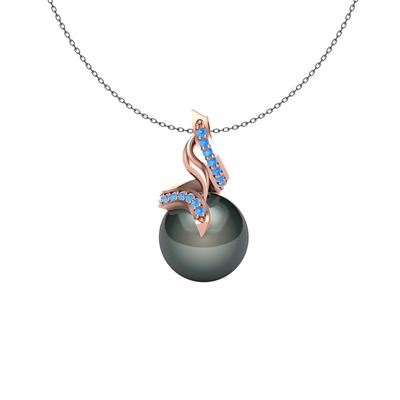Siyah inci ve akuamarin 18 ayar rose altın kolye (40 cm gümüş rolo zincir)
