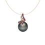 Siyah inci ve ametist 18 ayar rose altın kolye (40 cm gümüş rolo zincir)