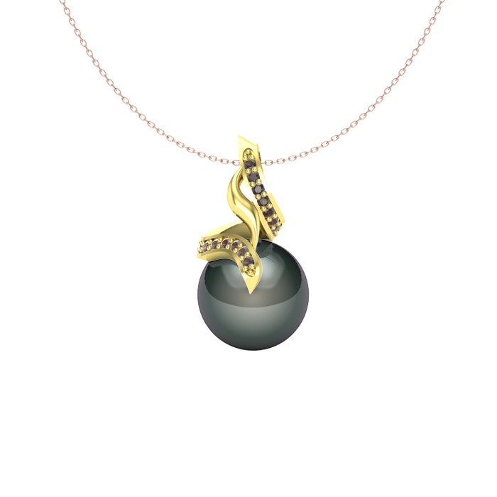 Siyah inci ve dumanlı kuvars 925 ayar altın kaplama gümüş kolye (40 cm gümüş rolo zincir)