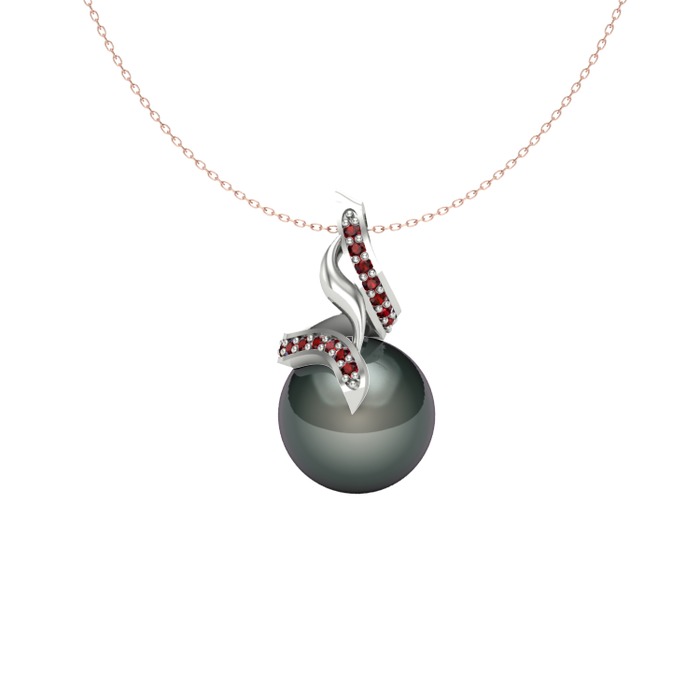 Siyah inci ve garnet 14 ayar beyaz altın kolye (40 cm rose altın rolo zincir)
