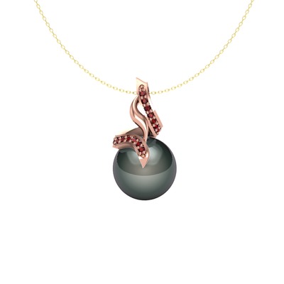 Siyah inci ve garnet 18 ayar rose altın kolye (40 cm gümüş rolo zincir)